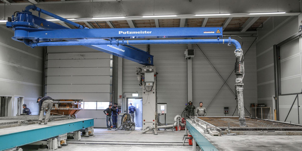 Pyörivä jakaja RV 16-2 on ihanteellinen elementtimuotteihin. Se voidaan asentaa tilapäisesti projektia varten tai asentaa laajaan käyttöön. Hydraulisesti liikutettavien varsiensa ja 16 m:n ulottuvuuden ansiosta se sopii täydellisesti suuriin muotteihin. Koska se on asennettu pylvääseen, se vie hyvin vähän tilaa varastointiin tehdasrakennuksessa.
