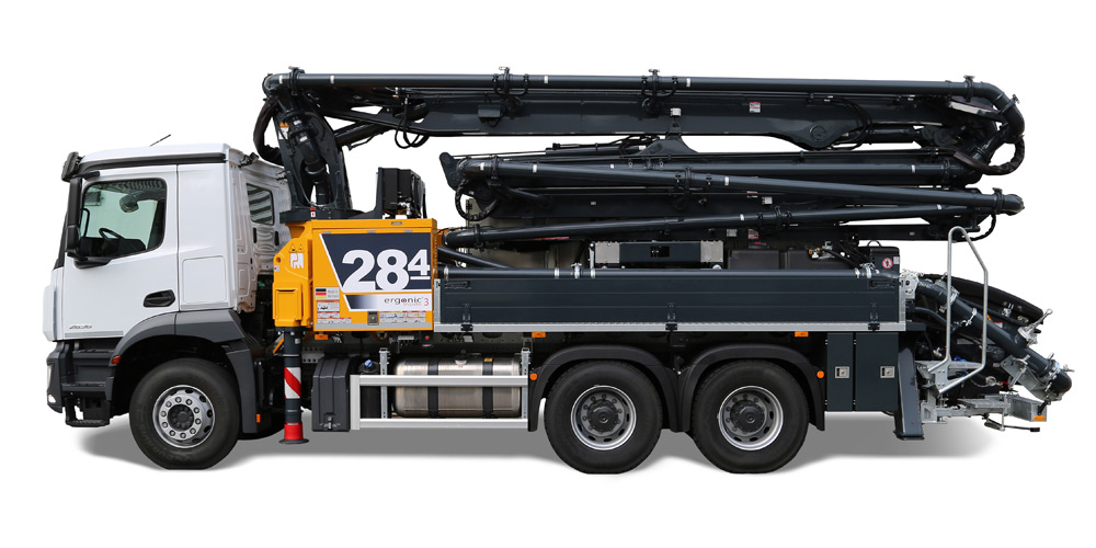 This compact machine is perfect for anyone looking for mobile, manoeuvrable and flexible concrete pumping. Despite its low height, it can master significant challenges: Tight or restricted set-up spaces, for example in inner-city areas and construction sites requiring good slip characteristics, or when building bridges.